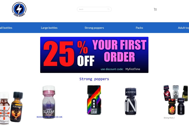 Price point is always a great reason to choose one website over another. We found Room-Aromas has the cheapest poppers. With a quick look around you could think they are more expensive but Room-Aromas really excels in looking after loyal regular customers with discount codes released on a regular basis. Shop smart and use the discount codes and you will not beat Room Aromas on the prices.